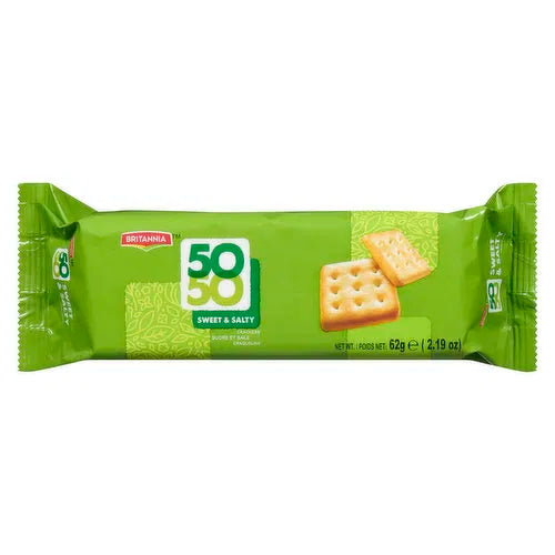 Enjoy a delightful treat with Britannia Fifty Fifty, a perfect blend of chocolate and vanilla in every 62g pack. This playful snack offers a fun twist on classic flavors, making your snack time a little more exciting and delicious. Perfect for sharing or savoring solo!