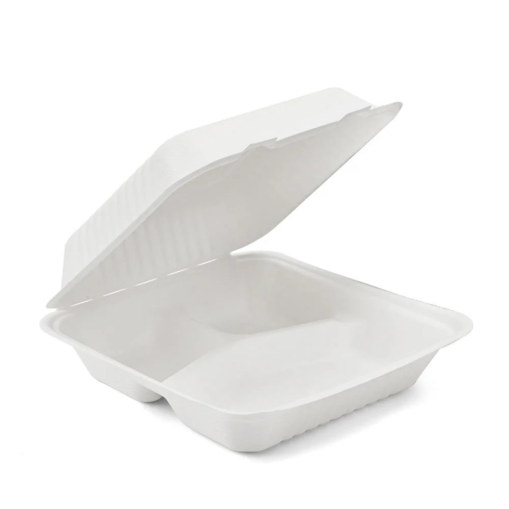 Serve your meals with a splash of eco-friendly fun using the EcoGreen 9X9X3 3 Compartment Bagasse Container! Made from natural bagasse, this hinged lid container keeps your food fresh and separated while helping the planet. Perfect for snacks, meals, or leftovers, it’s strong, compostable, and ready to roll wherever your appetite takes you!