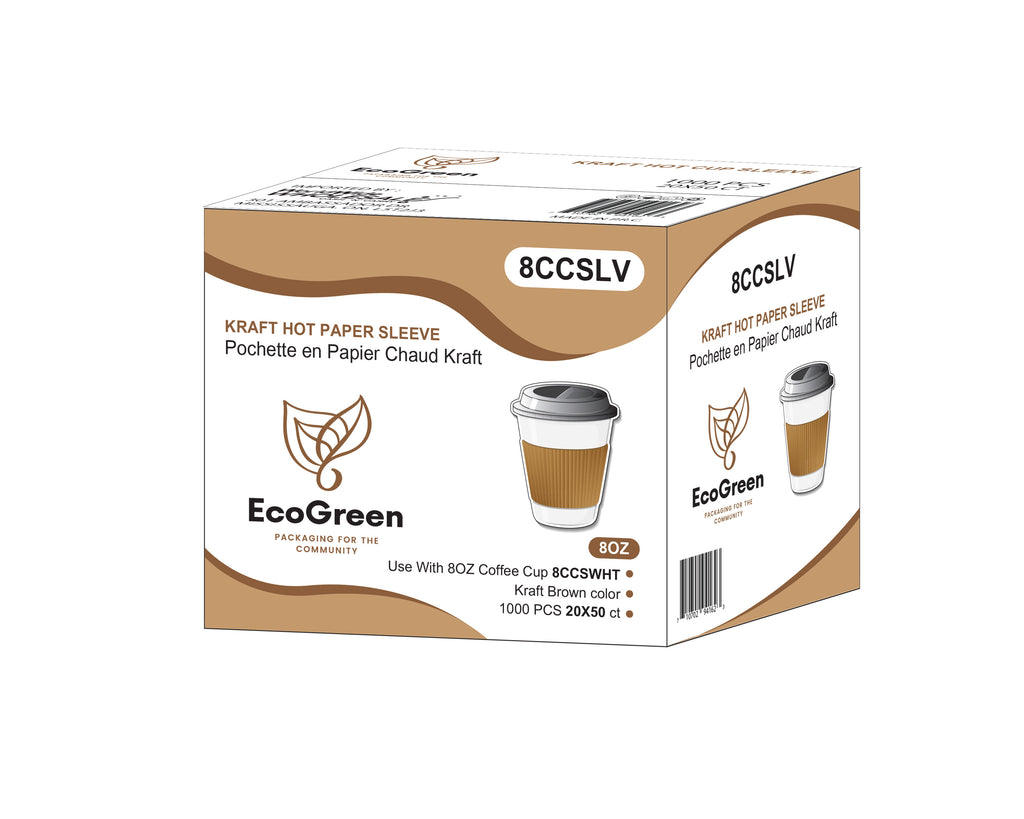 Keep your hands cool and your coffee cozy with the EcoGreen hot cup sleeve for 8oz cups. Designed to protect your fingers from the burn while adding a splash of eco-friendly charm, this sleeve is the perfect coffee companion. Slip it on, sip happily, and save the planet one cup at a time!