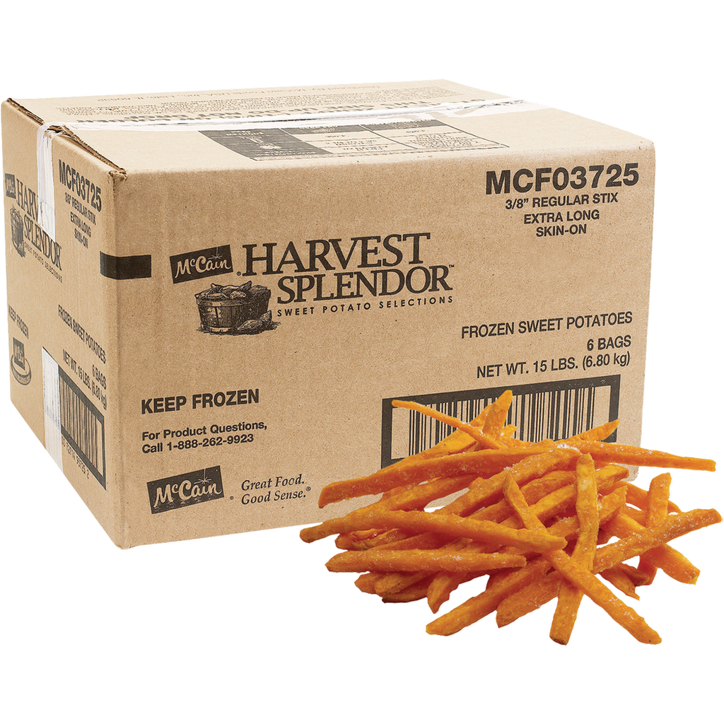 Dive into deliciousness with McCain Harvest Splendor Sweet Potato Fries! These XL 3/8” fries bring a perfect balance of crispy crunch and natural sweet potato flavor. Ideal for snacking or pairing with your favorite dips, they’re a tasty way to brighten up any meal with a fun twist. Get ready to fry up some fun!